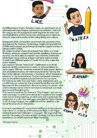 As Willowmoore High's Robotics Team, we participate in an